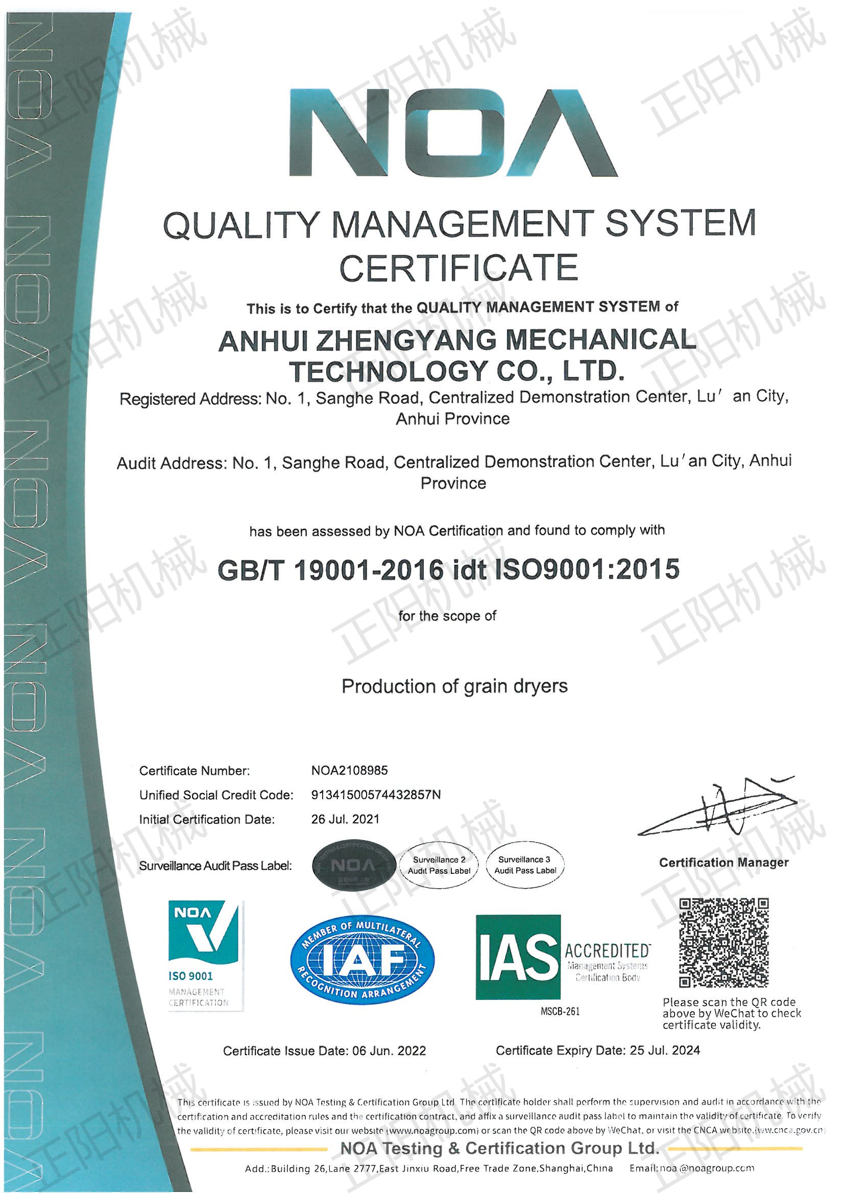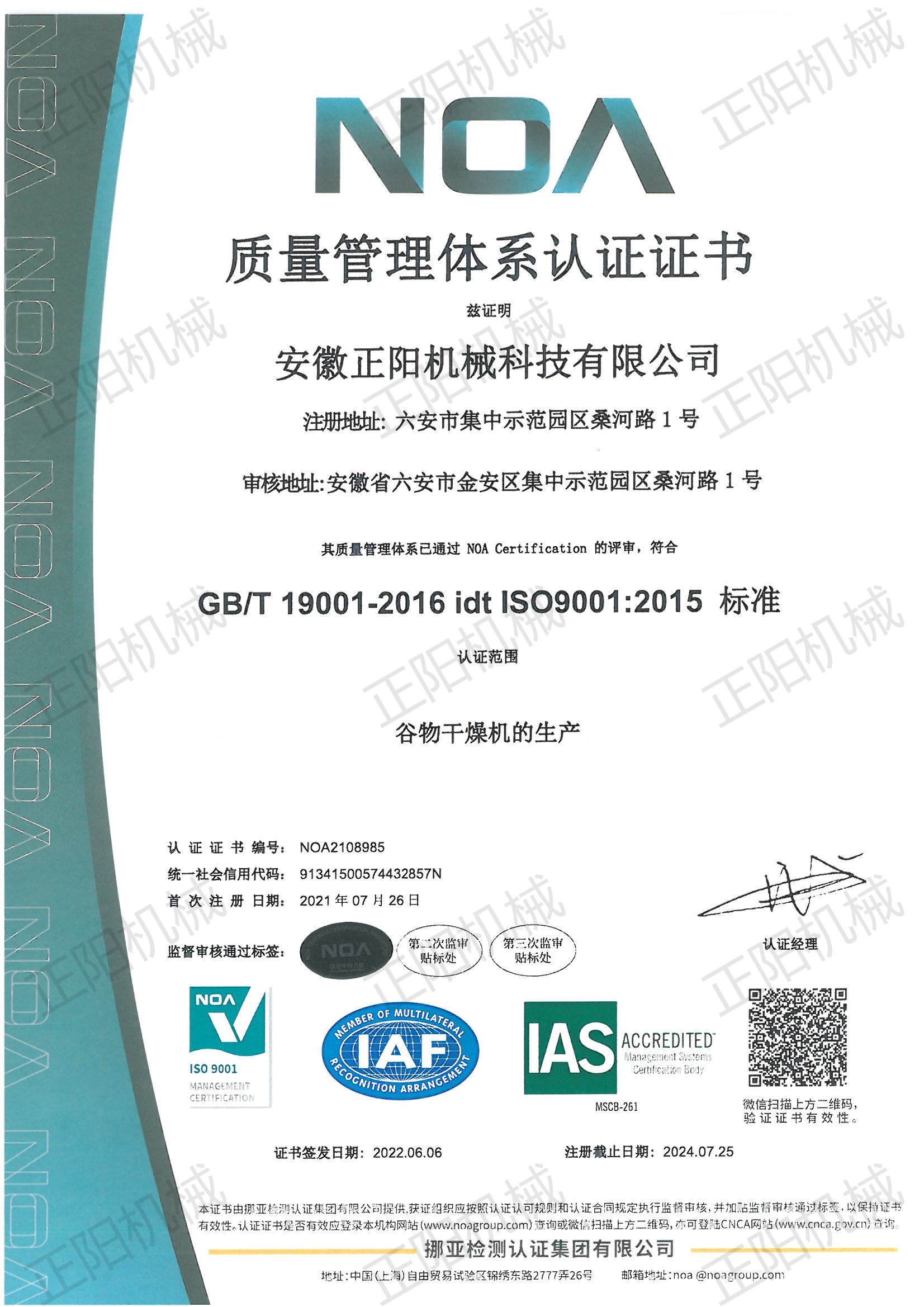 質(zhì)量管理體系認(rèn)證證書