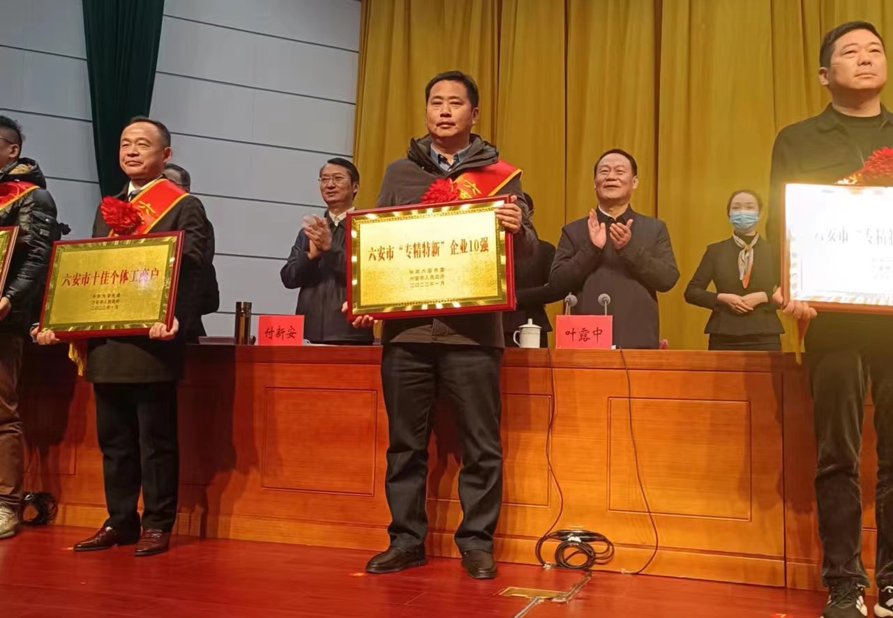 安徽正陽(yáng)機(jī)械科技有限公司被中共六安市委、六安市人民政府授予六安市“專(zhuān)精特新”企業(yè)10強(qiáng)榮譽(yù)稱(chēng)號(hào)